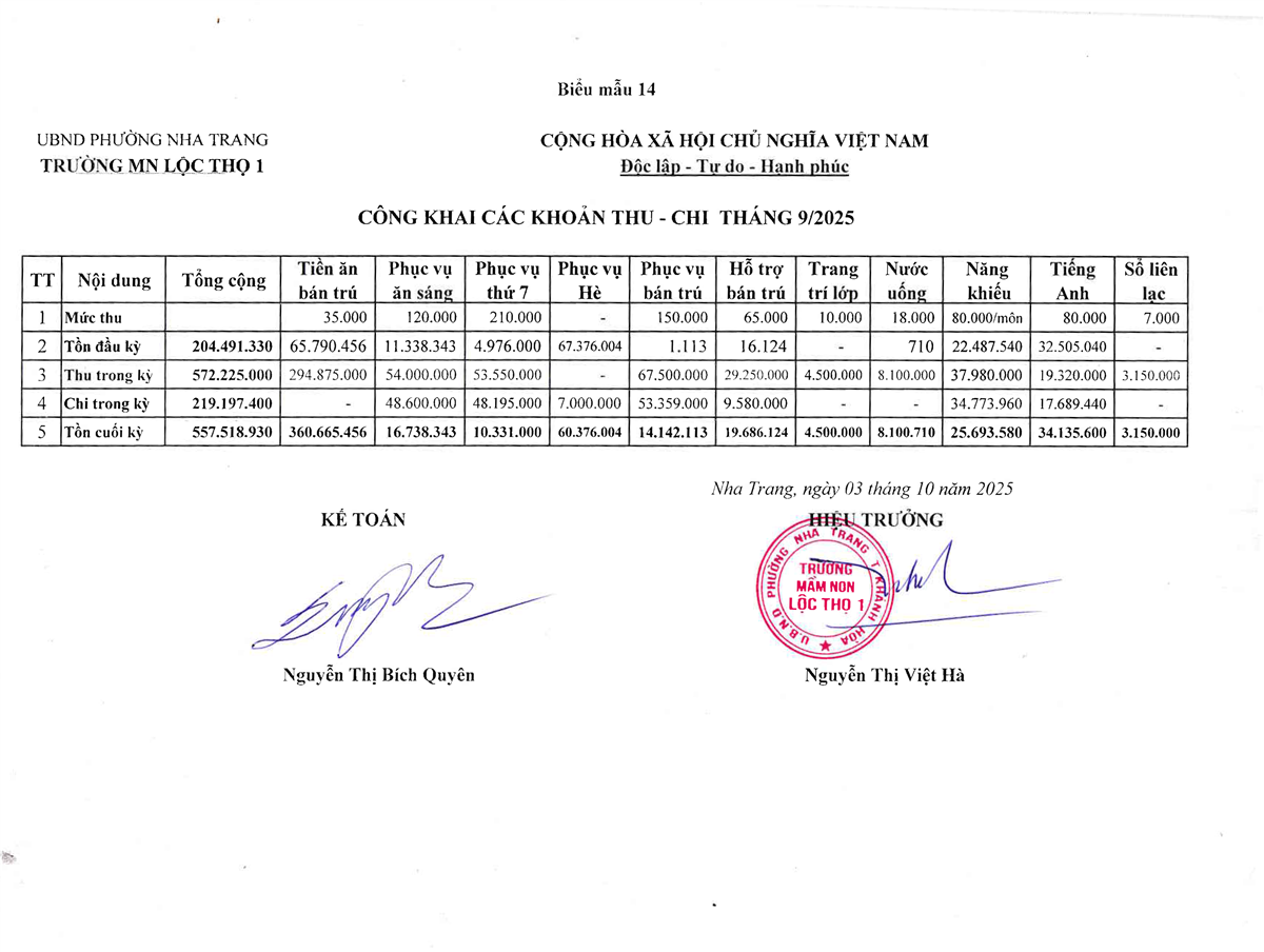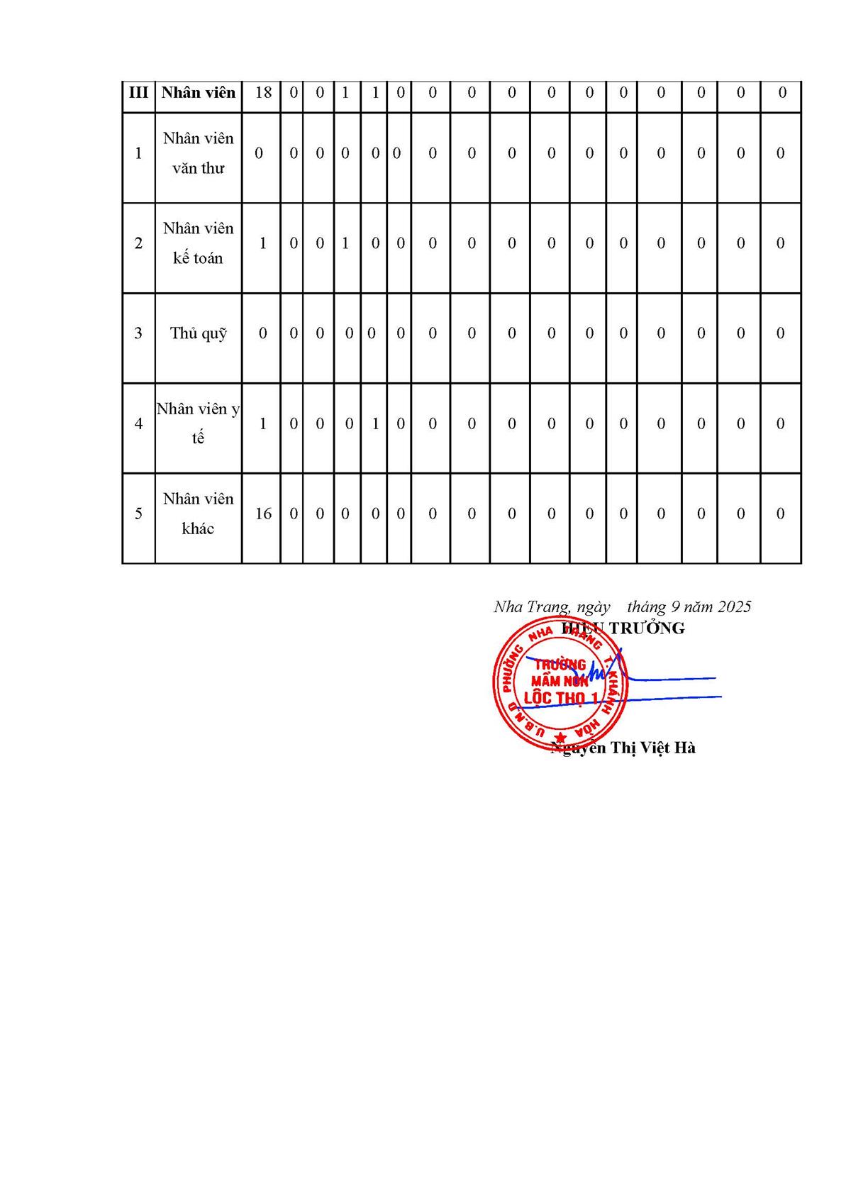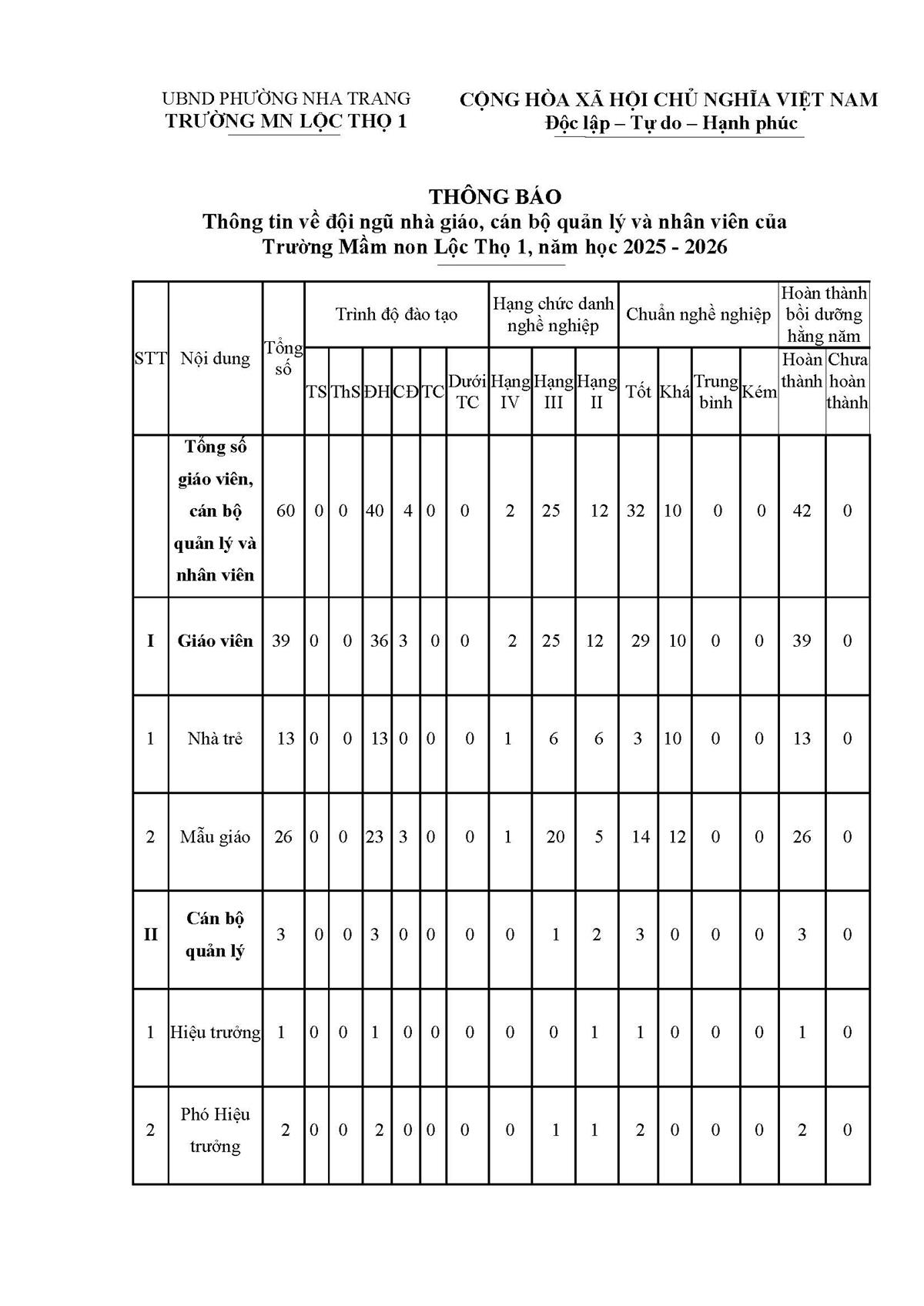 Biểu mẫu 1 - Thông tin về đội ngũ nhà giáo, cán bộ quản lý và nhân viên của nhà trường năm học 2024 - 2025